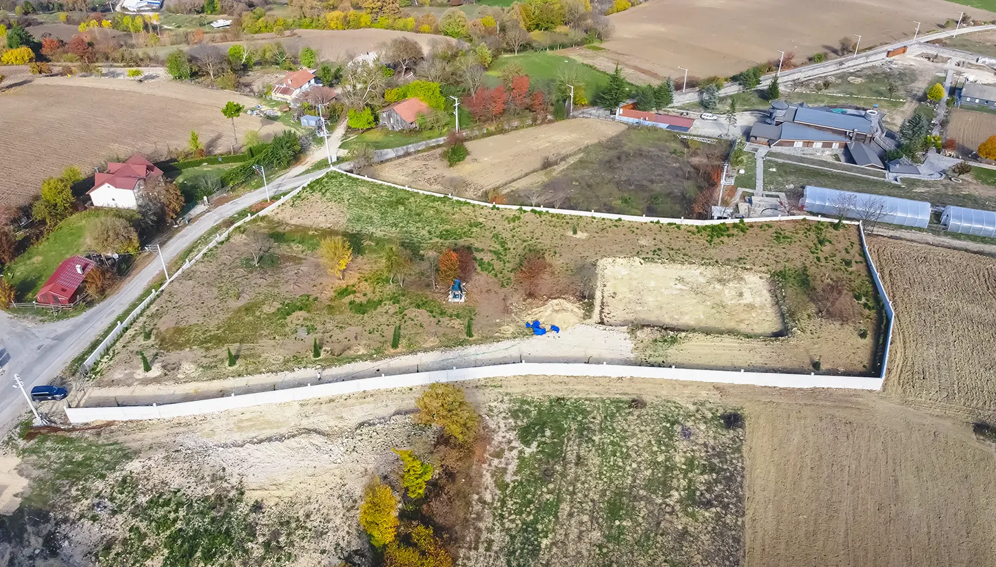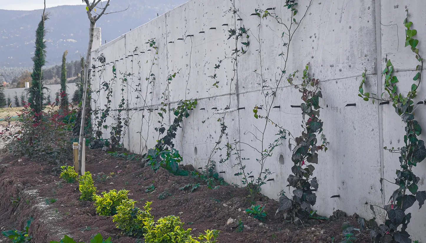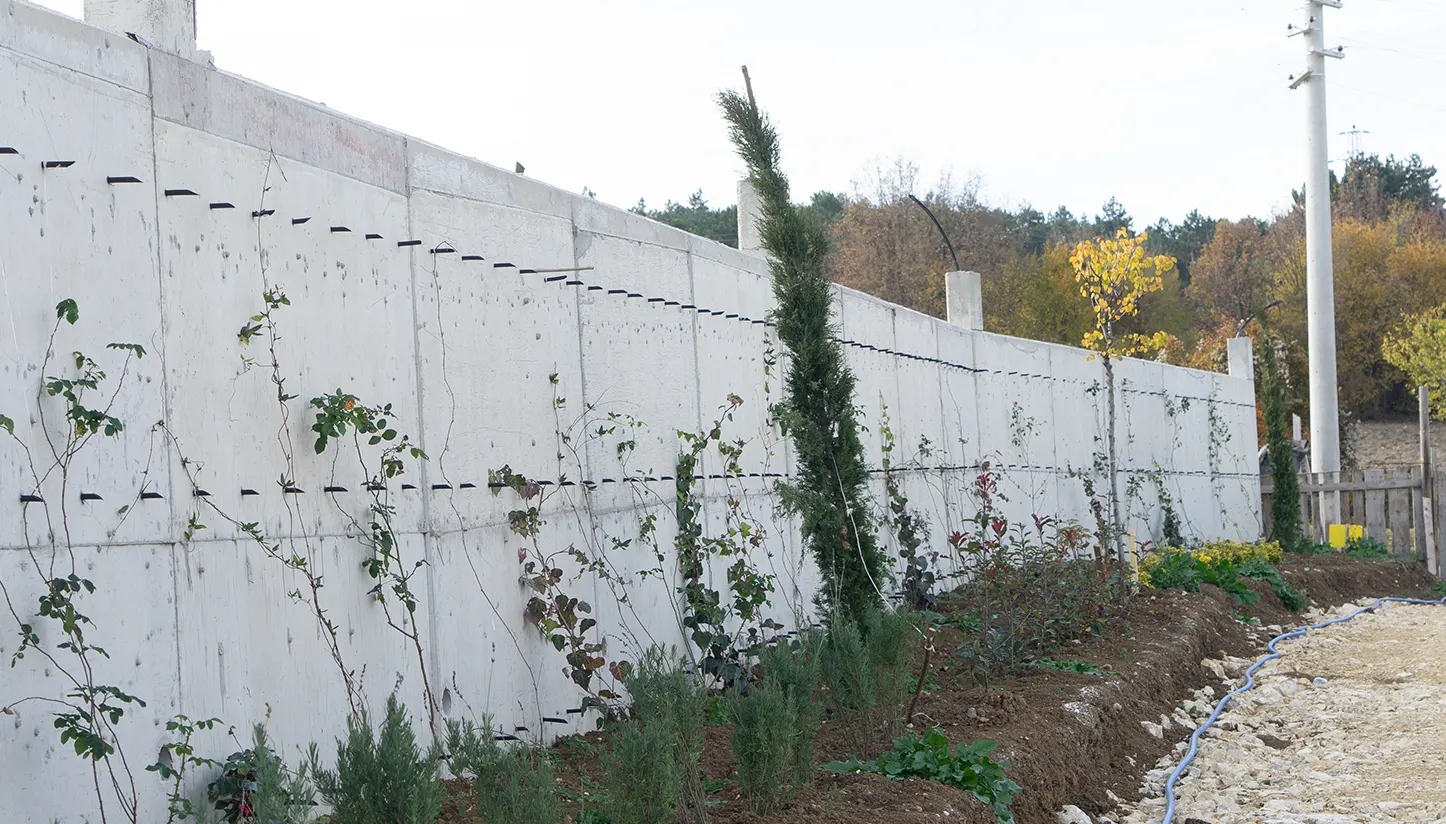 Arazi 1000m2 villa 6000m2 toprak araziden oluşmaktadır. Villa bahçesi için yapılan peyzaj projemizde ilk olarak 7000m2’lik araziyi çevreleyen 3,5m yükseklikteki beton çevre duvarlarını oluşturduğu soğuk görüntüyü absorbe etmekti. Daha etkileyici bir görüntü elde etmek için bahçe ve villa girişi arasına bulunan 60m’lik bir yol çalışması yapıldı. 6000m2’lik toprak arazinin müşterimizin isteği üzerine büyük bahçenin bir kısmı meyve bahçesi olarak düzenlendi ve %15’lik kısmına meyve ağaçlarının dikimi, hiza durumu ve planlanması tamamlandı. Arazi yüzeyini peyzaj ve düzenleme için ilk olarak tesviye çalışması yapıldı. Alandaki kötü görüntü sağlayan ve kullanıma engel olan taşlar ve toprak zemin dikime hazır hale getirildi. Villa bahçesinde ön bitkilendirme çalışması yapıldı.Bitkilendirme ve Ağaçlandırma çalışmasında kullanılanlar;
